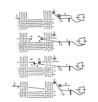 這兩種型式相比,單劍桿引緯時(shí),緯紗不經(jīng)歷梭口中央的交接過程,故較可靠,劍頭結(jié)構(gòu)簡單,但劍桿尺寸大,增加占地面積,且劍桿動程大,限制車速的提高。而雙劍桿引緯時(shí),劍桿輕巧,結(jié)構(gòu)緊湊,便于達(dá)到寬幅和高速,梭口中央的緯紗交接現(xiàn)已很