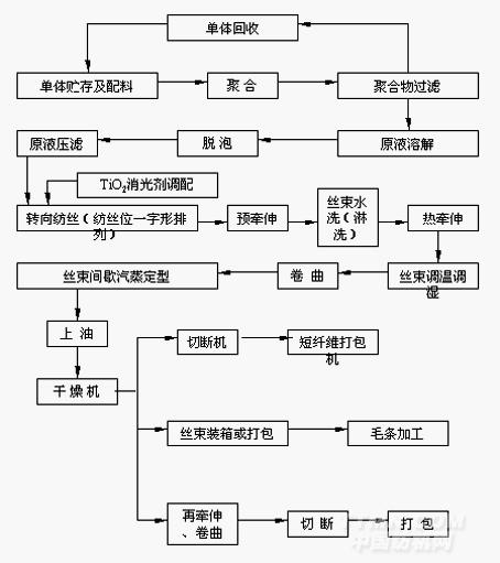 腈綸濕法(二步法工藝)紡絲工藝流程圖