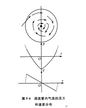 可以看出,渦流中心處的壓力比渦流邊界(接近管壁)處低而形成真空,如圖5—4所示。