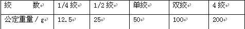 1. 定重成絞:按重量成絞,每一絞紗的重量為50g(在回潮率為8.5%時(shí))。根據(jù)紗特不同,可分為單絞、雙絞、四絞、四分之一絞和二分之一絞。要據(jù)國(guó)標(biāo)規(guī)定,小絞紗的重量系列如下: