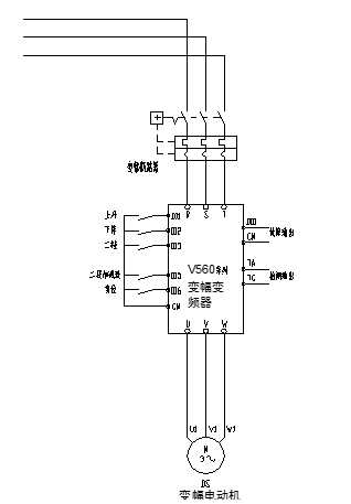 變幅部分采用4kW高性能矢量變頻器V560系列,其系統(tǒng)接線圖如下: