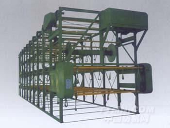 ● 雙節(jié)距輸送鏈吊掛經(jīng)、織軸,框架四層儲(chǔ)存。