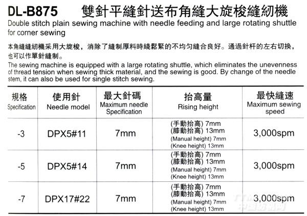 雙針平縫針?biāo)筒冀强p大旋梭縫紉機(jī) DL-B875