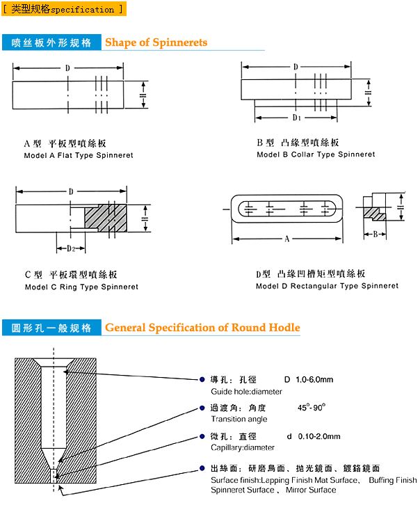 備注: 本公司生產(chǎn)的噴絲板和化纖紡絲組件采用進口日本的不銹鋼SUS630、SUS431和SUS316。