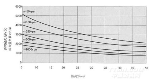 注:(1)上述(表2)表示軸向力Fa=0時(shí)的許可徑向力,(表3)表示徑向力Fr=0時(shí)的許可軸由力,當(dāng)即有徑向力又有軸向力時(shí),(表2)表示當(dāng)量許可負(fù)載力P,這時(shí)可用公式P=0.56Fr+2Fa對實(shí)際徑向力和實(shí)際軸向力進(jìn)行驗(yàn)算。