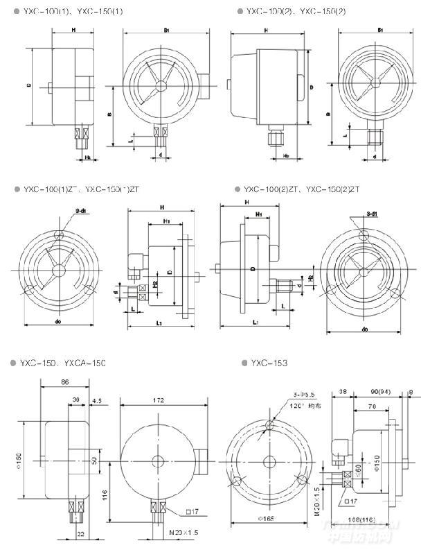 YXC-100、YXC-150磁助電接點壓力表