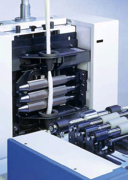 開放式勻整并條機(jī)元件將生條直接喂入轉(zhuǎn)杯紡紗機(jī),使紡紗流程最短。帶方形條筒裝置的一體化并條機(jī)IDF完全能勝任這個(gè)任務(wù)。