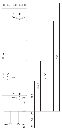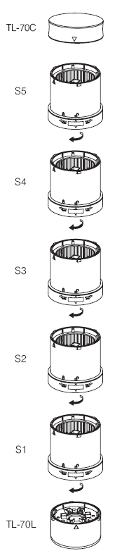 ■ 一臺警示燈最多能組合五個單元:五個光組件或四個光組件和一個聲組件組成