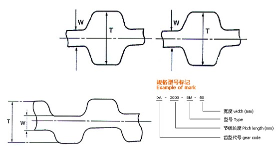 雙面齒同步帶的節(jié)距和齒形等同于單面齒同步帶的齒形和節(jié)距。