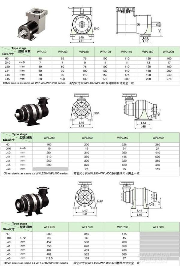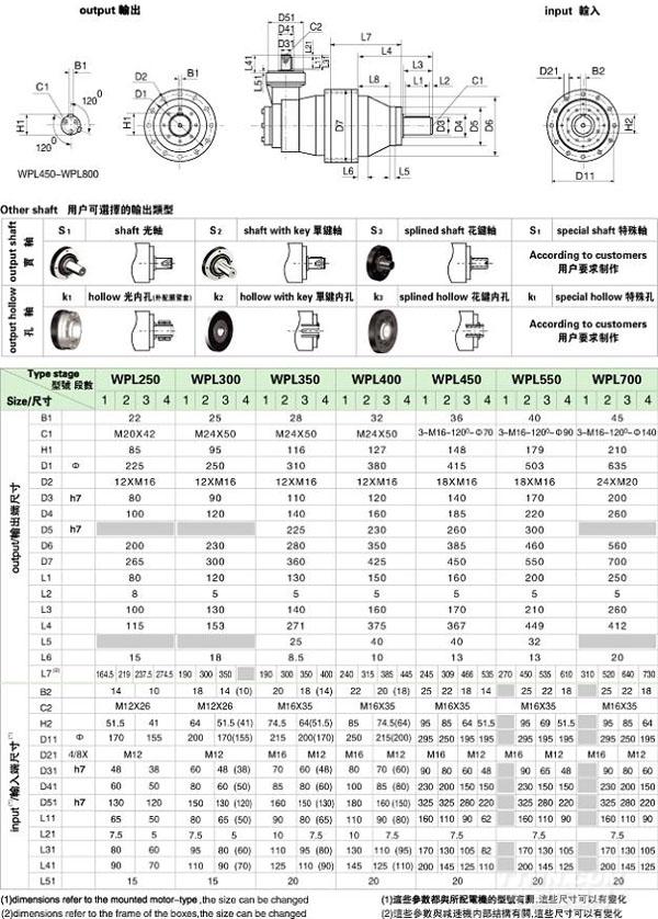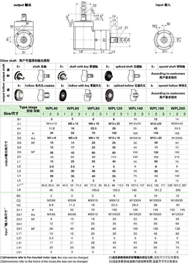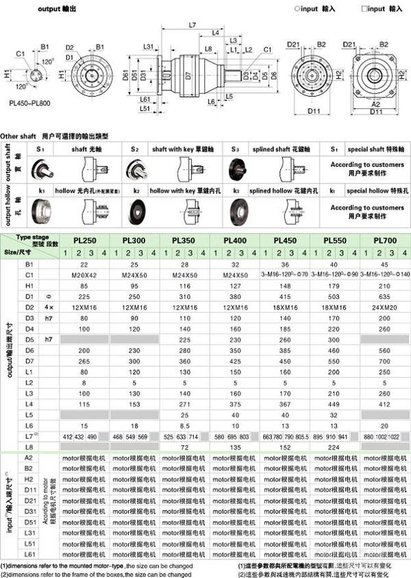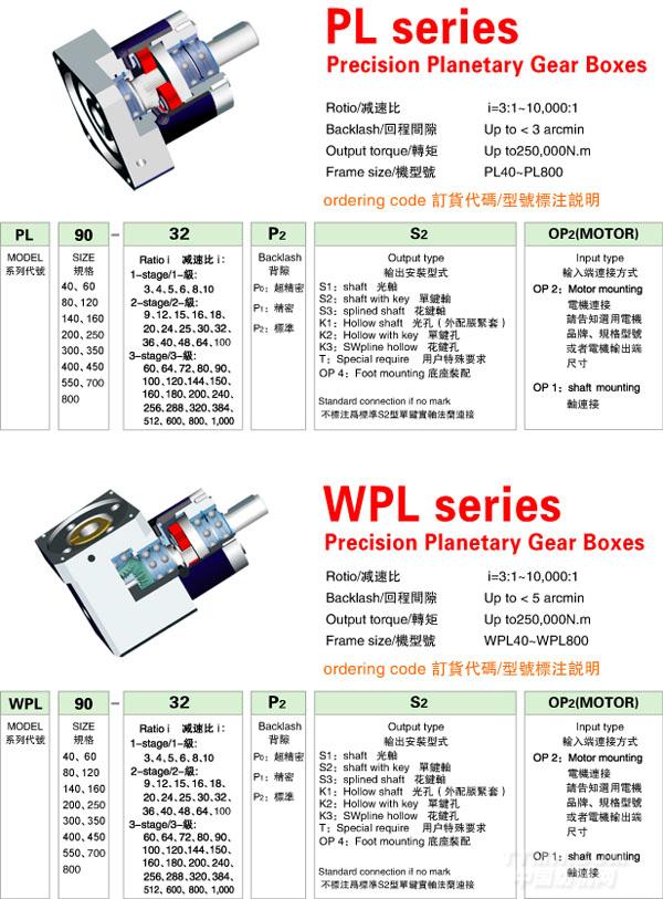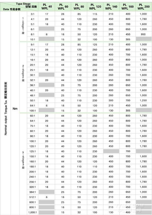 PL/WPL 系列精密行星減速機(jī)技術(shù)參數(shù)
