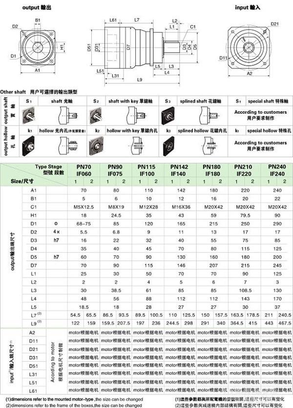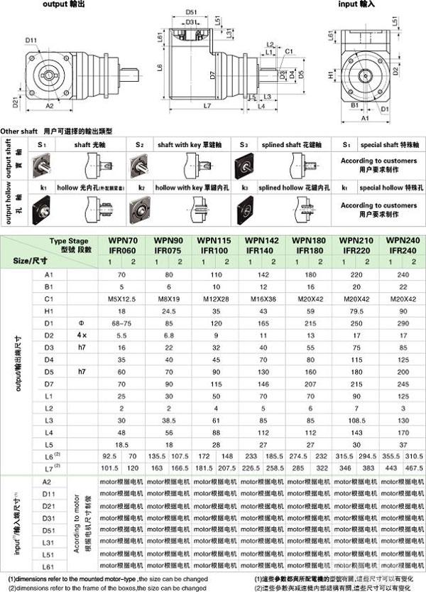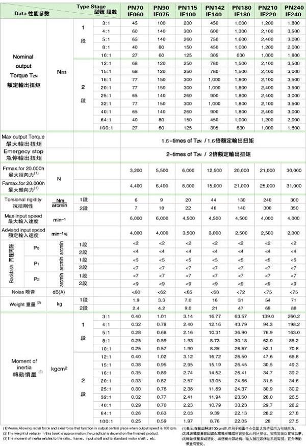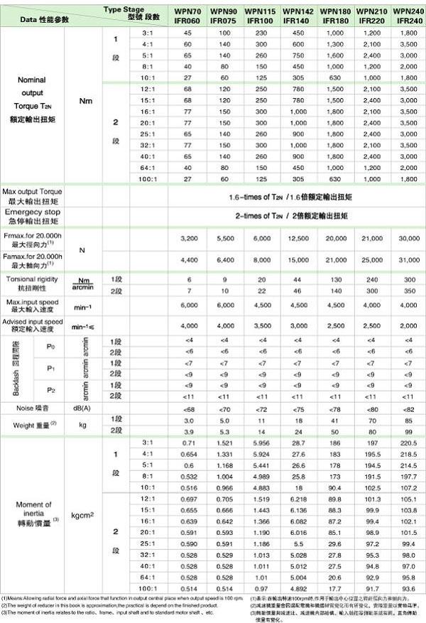 PN(IF)/WPN(IFR) 系列精密行星減速機(jī)技術(shù)參數(shù)