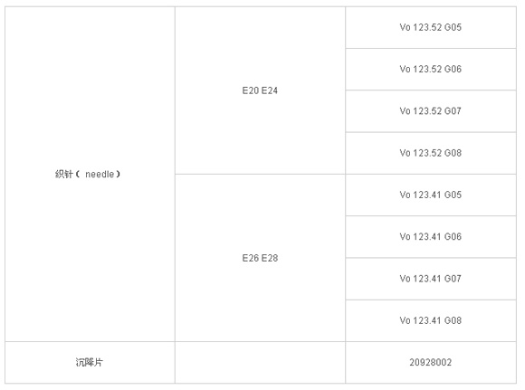 QJZ126-4用針一覽表