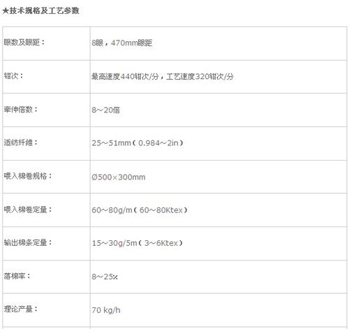 本機型用于棉紡精梳工序,它可以排除一定長度以下的短纖維、棉結(jié)、雜質(zhì)和纖維疵點,提高纖維的伸直度、平行度,是紡制高支紗、特種工業(yè)用紗和混紗產(chǎn)品所必需的設備。
