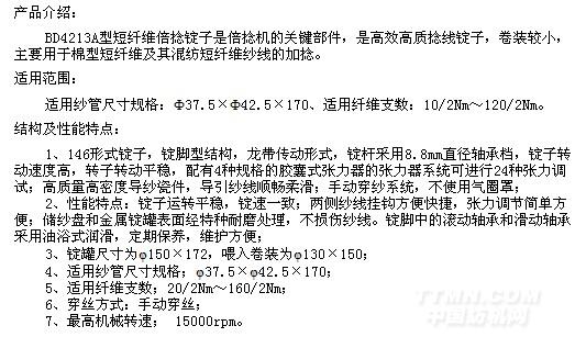 ????BD4213A型短纖維倍捻錠子是倍捻機的關鍵部件,是高效高質捻線錠子,卷裝較小,主要用于棉型短纖維及其混紡短纖維紗線的加捻。 |