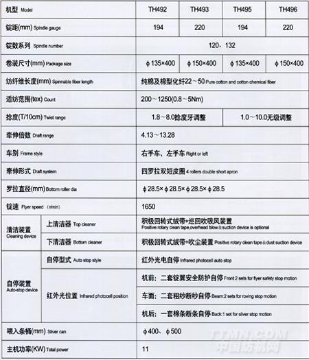 全電腦粗紗機主要參數(shù)