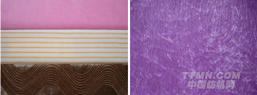 本機(jī)可配置多種規(guī)格的沉降片(毛高1.8~3.2 mm),生產(chǎn)多款反包毛巾布。也可選擇採(cǎi)用上菱角的雙軌道設(shè)計(jì),更方便地把持好沉降片的運(yùn)動(dòng),使織物毛紗被裹(?)更平整。經(jīng)抓毛、剪毛、磨毛、壓花等後處理工序,可製成天鵝絨、不倒絨、電子絲絨等,增配氨綸裝置,可編織高彈性反包毛巾布料。