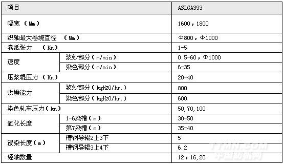ASGA393 型系列漿染聯(lián)合機主要規(guī)格及技術(shù)要求