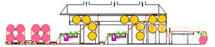ASGA365E型漿紗機工藝流程示意圖(一列式布局烘燥機構(gòu)+雙浸四壓式上漿機構(gòu))
