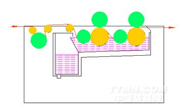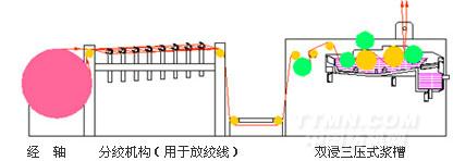 三輥式引紗+雙浸四壓式上漿機構(gòu)示意圖