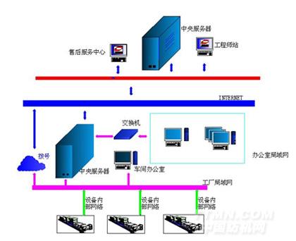 多臺設(shè)備局域聯(lián)網(wǎng)及通過調(diào)制解調(diào)器和我們的服務(wù)部門連接的示意圖