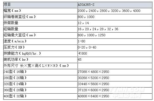 ASGA365型兩單元傳動雙漿槽漿紗機主要規(guī)格及技術(shù)參數(shù)