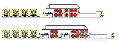 四只經(jīng)軸為一組,上下放置。