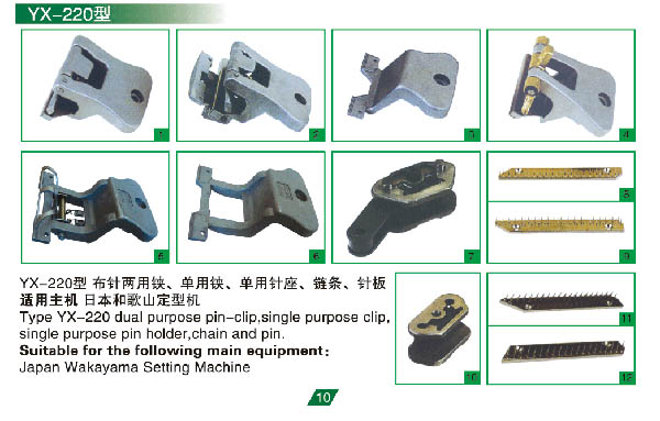 YX-220型 布針兩用鋏、單用鋏、單用針座、鏈條、針板