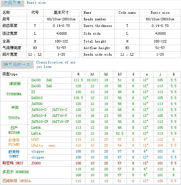 - [產(chǎn)品]-->噴氣筘: 適用于各種型號和系列噴氣織機