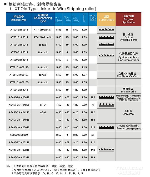 - [產(chǎn)品]-->清梳聯(lián)鐮齒型道夫針布 AD4030×2090