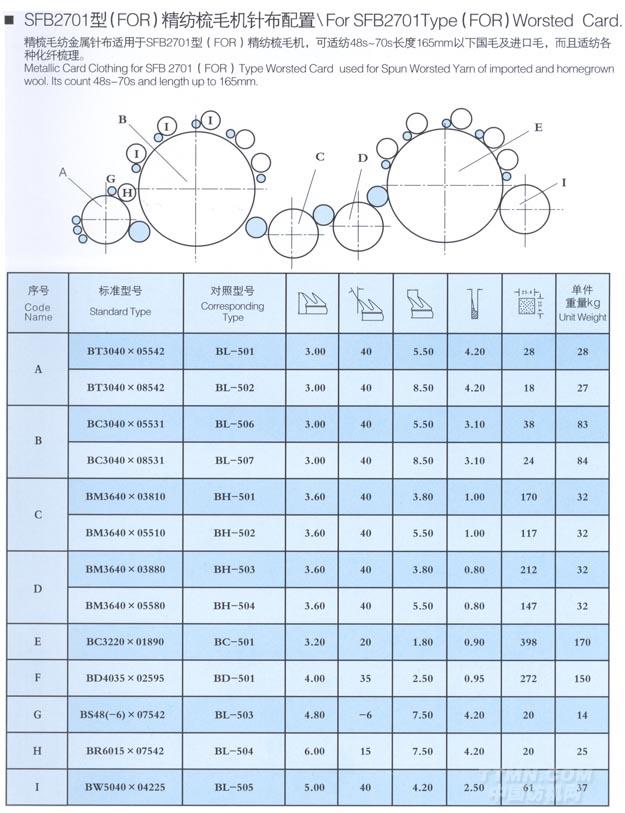 SFB2701型(FOR)精紡梳毛機(jī)自鎖針布配置