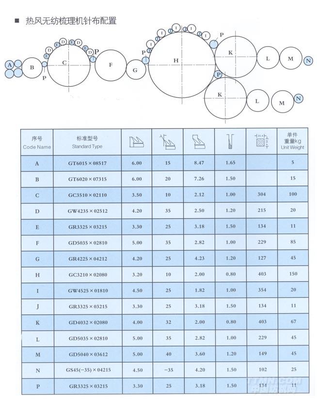 熱風無紡梳理機針布配置