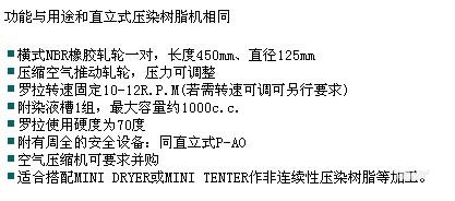 您所在的位置:紡機網 >> 廈門瑞比精密機械有限公司 >> 橫式壓染樹脂機