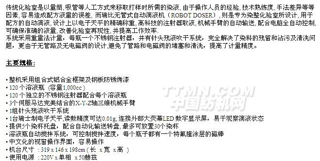 您所在的位置:紡機(jī)網(wǎng) >> 廈門瑞比精密機(jī)械有限公司 >> 實(shí)驗(yàn)室用全自動(dòng)滴液機(jī)