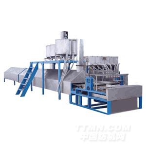 本機(jī)器是目前國(guó)內(nèi)先進(jìn)并且產(chǎn)量最大的絞紗段染機(jī)。可對(duì)晴綸、毛晴、羊毛、混紡纖維的不同支數(shù)的絞紗進(jìn)行分段染色,并且自動(dòng)連續(xù)進(jìn)行固色處理,分段染色的毛線、絞紗、花式線可以機(jī)織、針織或手工編織出具有“自由花型”的織物,深受消費(fèi)者的喜愛。