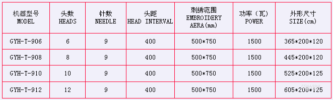 植絨繡主要技術(shù)參數(shù):